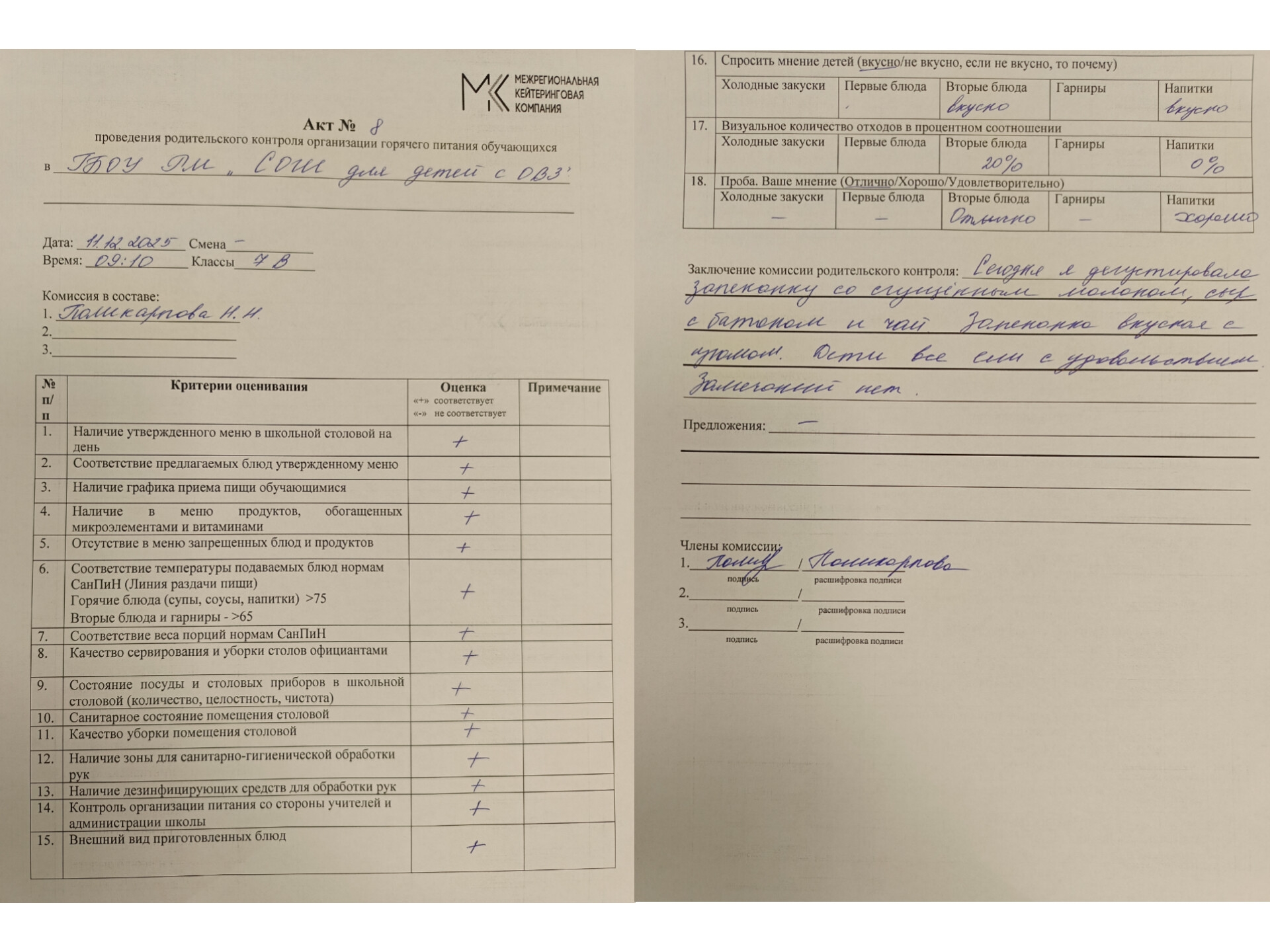 Сегодня в нашей школе состоялся родительский контроль школьного завтрака.